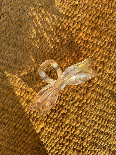 Bows on just about everything. Sweep your hair back for this sweet spring touch that is complete with a pretty iridescent finish (that looks even more prettier in the sun). Comes complete in an Ajouter dust bag.