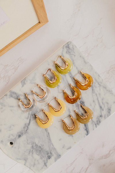 Earthy tones in these 70s inspired earrings is the perfect combo. The oval shaped resin hoops with the lightly hammered gold-plated details and softly shaped closure is the perfect day-to-night jewellery piece. Sold individually - select from dropdown.