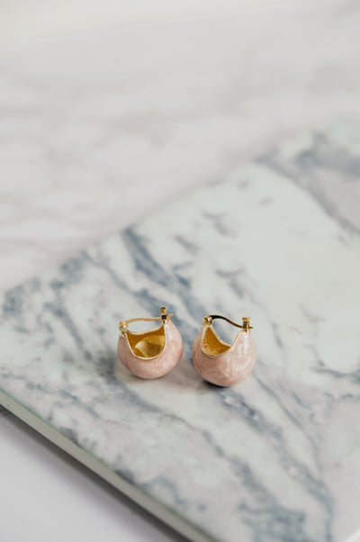 Laila White Shimmer Enamel Hoop 18k Gold Plated Earrings