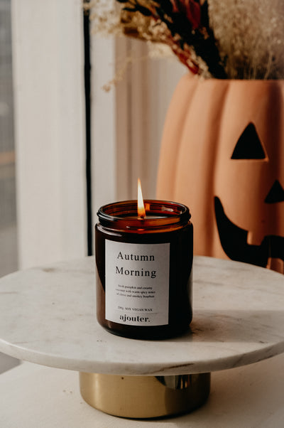 Romanticise autumnal mornings with the Autumn Morning Halloween Fall Candle. Expect fresh pumpkin and creamy coconut with warm spicy notes of clove and smokey bourbon.