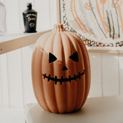 Creepy but cute with this classic terracotta jack-o-lantern pumpkin. Place a tealight candle for a spooky glow that will be perfect indoor our outdoor.