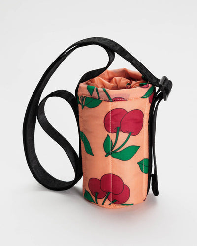 H20 on the go with the Cherry Puffy Water Bottle Sling. The lightly cushioned salmon pink bag features an adjustable strap and fits most water bottle sizes. Whether it's hiking, gym, a festival or to work this will be a perfect handsfree accessory. Adjustable strap - 55” strap (longest)
