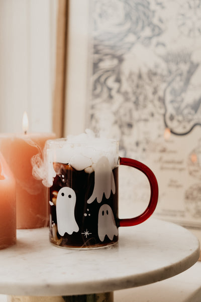 Sip your morning coffee in our spooky Halloween Ghost Mug. An array of cute (not so creepy) ghosts, bats, sparkles and is complete with an amber handle. Handwash only. Sold individually