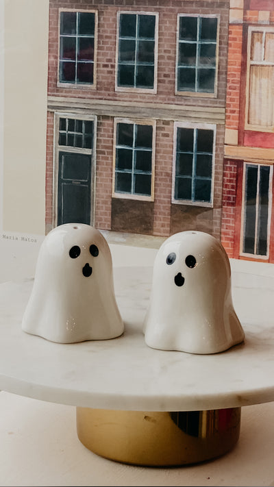 Add some scares to your Halloween table with this pair of ghost salt and pepper shakers. Whether used for wicked feasts or seasoning spooky dishes, these ghosts will be welcome guests at your next dinner party.