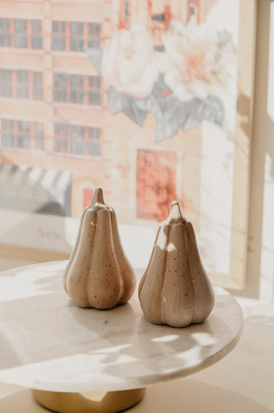 Minimal autumn vibes with the Esme Rustic Tall Speckle Pumpkin. The tall pumpkin rustic pumpkin features light speckle and will be a cute standalone addition or with a group of pumpkins.