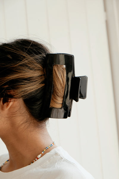 Oversized and here for whenever you want to whip your hair up. The onyx all black claw clip will be suitable for all hair types including thick hair and box braids. The rectangle shape is finished with a secure claw clip closure. Sold individually.