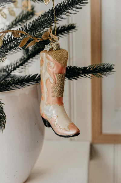 Paulina Champagne and Opal Cowboy Boot Glitter Glass Christmas Tree Bauble
