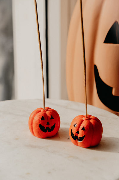 Pair your autumnal and spooky incense with Rory Pumpkin Jack-o-Lantern Incense Stick Holder. In classic rich halloween orange, the ceramic incense holder will be a cute addition to your creepy yet cute decor.