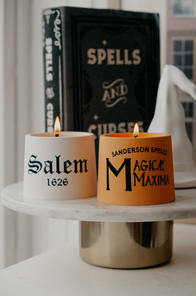 A trip to Salem during spooky season is always on the cards! Our Salem / Sanderson Sister inspired jars feature 2 different designs - all in handmade candle jars. Customise your candle by selecting your candle, slogan and scent. Housed in a spooky jar can be re-used for a pot of choice. Due to the natural materials used to make the jars expect small air-holes.