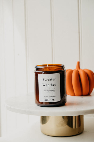 Wrap yourself in autumnal cosiness with our Sweater Weather Candle. Expect smoky tonka bean and oud wood with a vanilla and amber musk base. Expect a rich and luxe scent that will be perfect for a day or evening vibe.