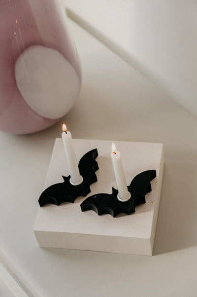Inspired by a spooky bat this all black candle holder is a playful yet creepy home accessory. Pair with our spell candles.