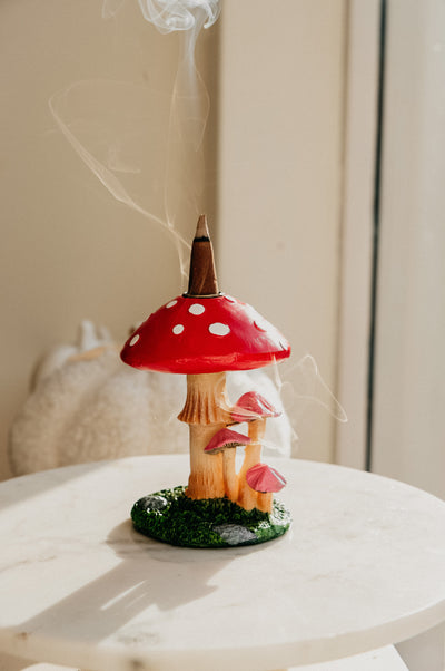 Cottagecore vibes all over with the Jeni Mushroom Blackflow Incense Cones. Place a backflow incense cone on the top and watch the smoke come ou the top and bottom of the burner. Comes complete the gift box.