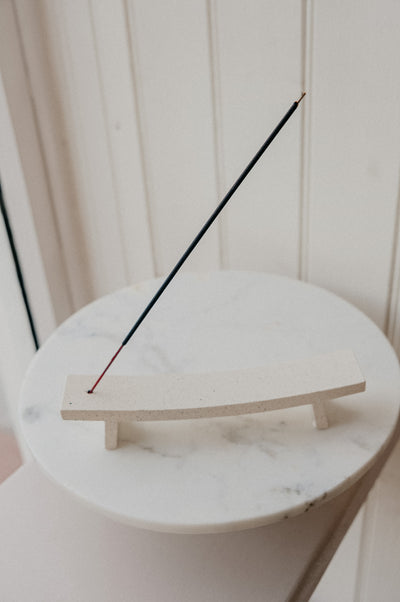 Make your 5-9pm routine with the Mindie Bench Cream Speckle Incense Holder. Burn an incense of choice on this bench style holder that will catch the excess ash. Comes complete with a gift box. Incense sold seperatly - select a scent from the options provided.