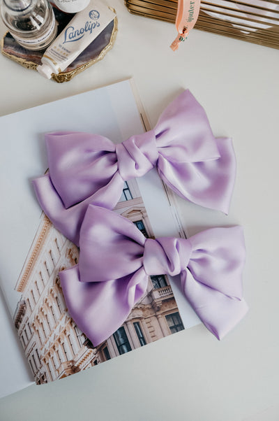 Brie Lilac Satin Big Bow Hair Clip Barrette