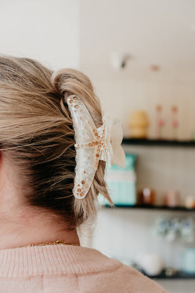 Nyla Starfish Cream Mermaid Diamante Claw Clip