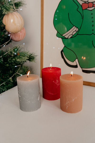 Rustic Nordic Chunky Pillar Candle - available in 3 colours