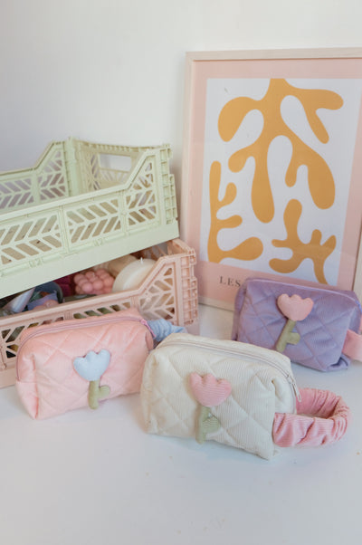 Tulip Flower Pastel Cord Beauty Bag - 3 colours available