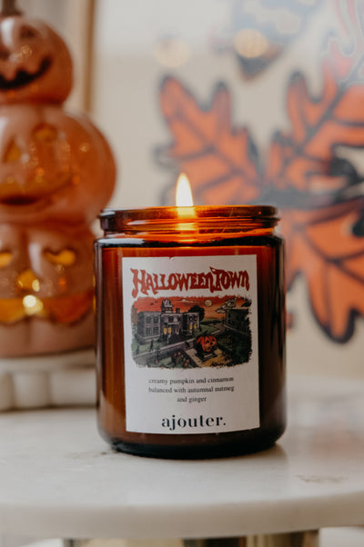 Strike a match and return Halloweentown every spooky season. Expect creamy pumpkin and cinnamon balanced with autumnal nutmeg and ginger. Candles are handmade at Ajouter HQ from 100% Vegan soy wax.
