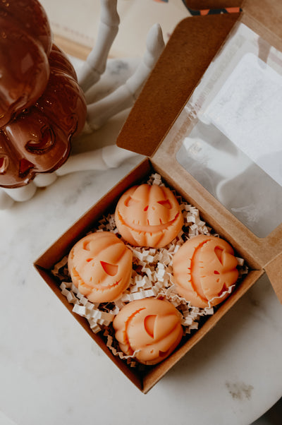 Spooky season is not complete with a trip to Halloweentown with Marnie and Aggie. The box of 4 jack-o-lantern pumpkin shaped melts are handmade at Ajouter HQ and have top notes of creamy pumpkin, cinnamon, clove that are balanced with raspberry, blackberry and cherry apple. Once melted expect a magical pool of shimmer! Select to use with any of our wax melt burners.