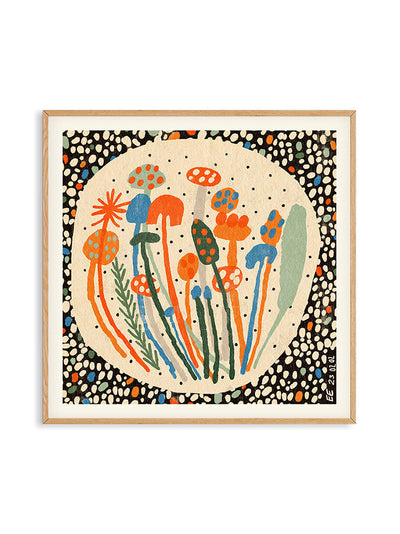 Mushroom cuteness with the grown-up yet playful addition to your space. Featuring an equally dark and light combo, this will work in many homes. Designed by Christine Brage, this piece will work solo or as an addition to a feature wall. Suitable for home, office, museum, or gallery display.