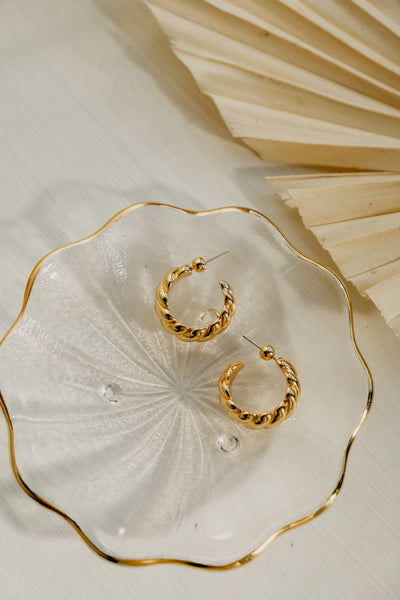 Everyday femme luxe with the Paloma Gold Plated Twisted Rope Hoop Earrings. Did you see the ball back closure? Extra cute points because we know the details matter. Sweep back your hair day-or-night and show off the twisted gold plated hoops that are made for everyday wear.