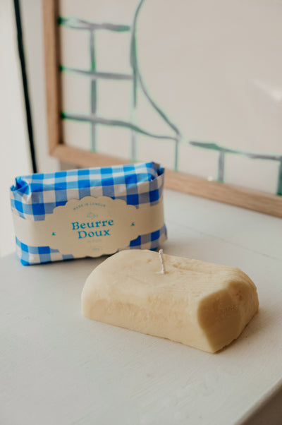 An ode to french butter - if you know, you know. A playful aesthetic candle that will be perfect on your next brunch tablescape. Wrapped in blue gingham wrap.