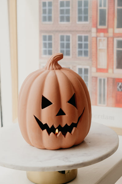 Talia Terracotta Jack-o-Lantern Pumpkin Tealight Holder Halloween Autumn