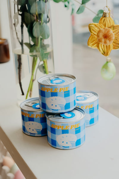 Have your home smelling like you’ve just whipped up a fresh dessert. Peel back the tin to a warm Apple Pie scent that is housed in a playful gingham print. Sold individually.