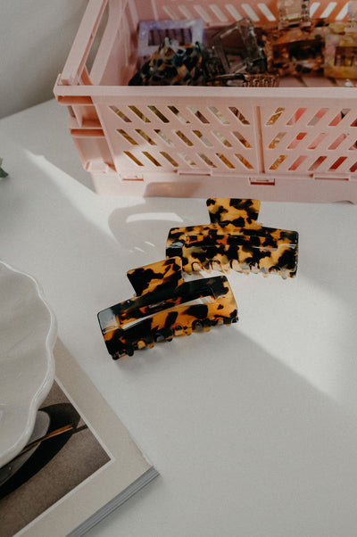 Pull back your hair, Camrie Tortoiseshell Leopard Print Large Claw Square Hair Clip. Whether your hair is thick, fine, curly (whatever the texture!), the Camrie claw clip will be an instant way to sweep back your hair. Got really long hair? Fold it back in on itself and secure with the claw clip