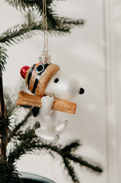 Keep it extra cute this Christmas with the Snoopy Peanuts Skiing Ornament. The hand-painted metallic design features a Snoopy with a cosy knitted hat and gold glitter skis.