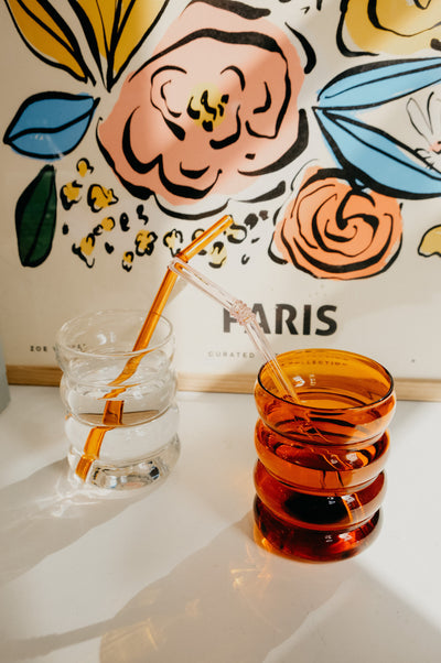 Sip in style with our Fae Borosilicate Glass Reusable Straws Pack of 4. Skip plastic / paper straws and opt for this environmentally friendly alternative. A fun addition to your morning iced coffee or perfect for finishing off your tablescape. Sold as pack of 4 and colours are clear, pink, teal and amber. Glasses sold separately.
