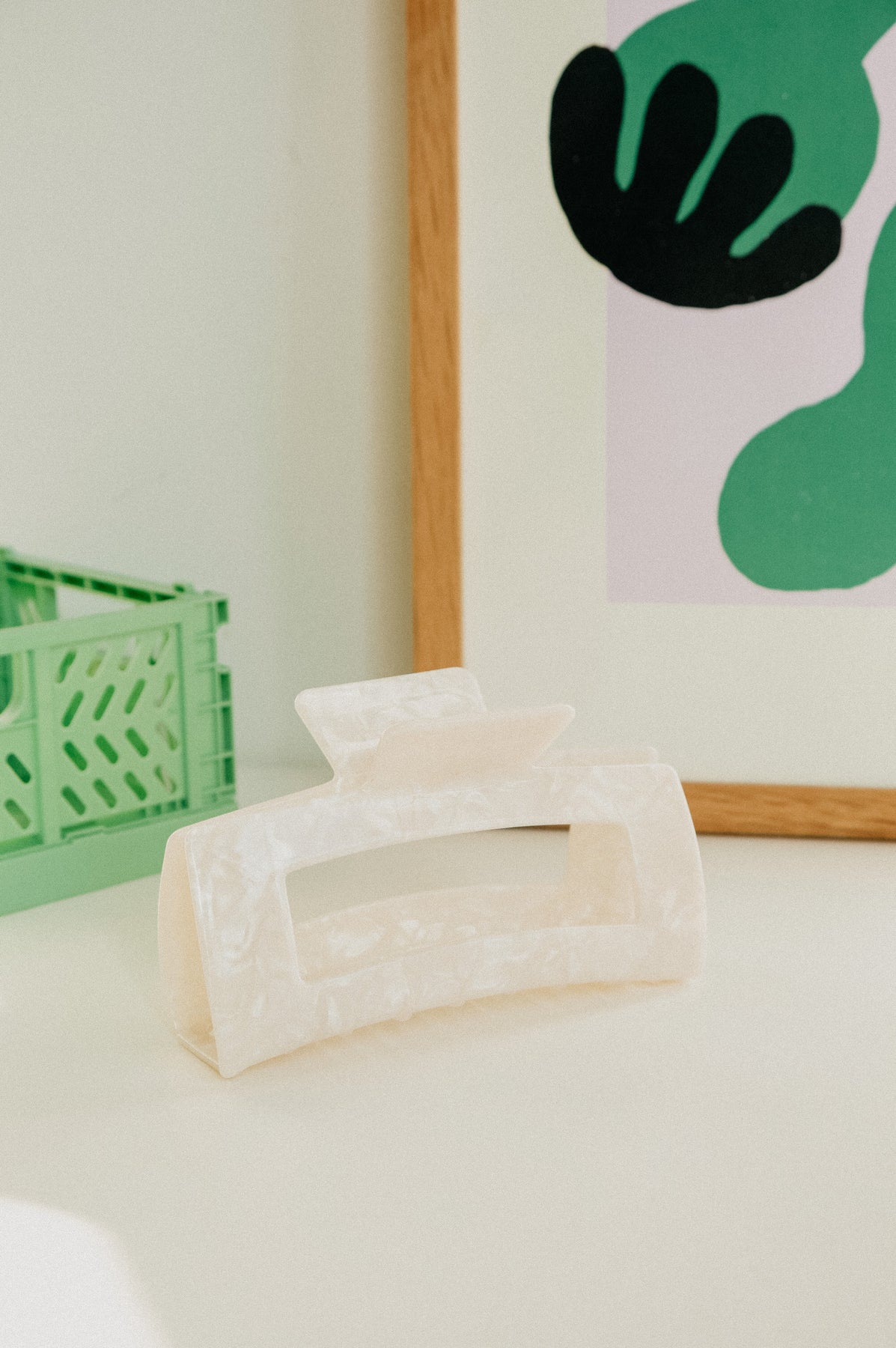 For that everyday claw that will work with just about every look. The Desiree XL White Iridescent Claw Clip will be suitable for all hair types including thick hair and box braids. The rectangle shape features a slight soft oval and is finished with a secure claw clip closure.