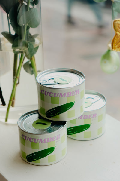 The candle taking centre window space on a summer afternoon. Peel back the tin to a fresh and minty  scent that is housed in a playful gingham print. Sold individually.