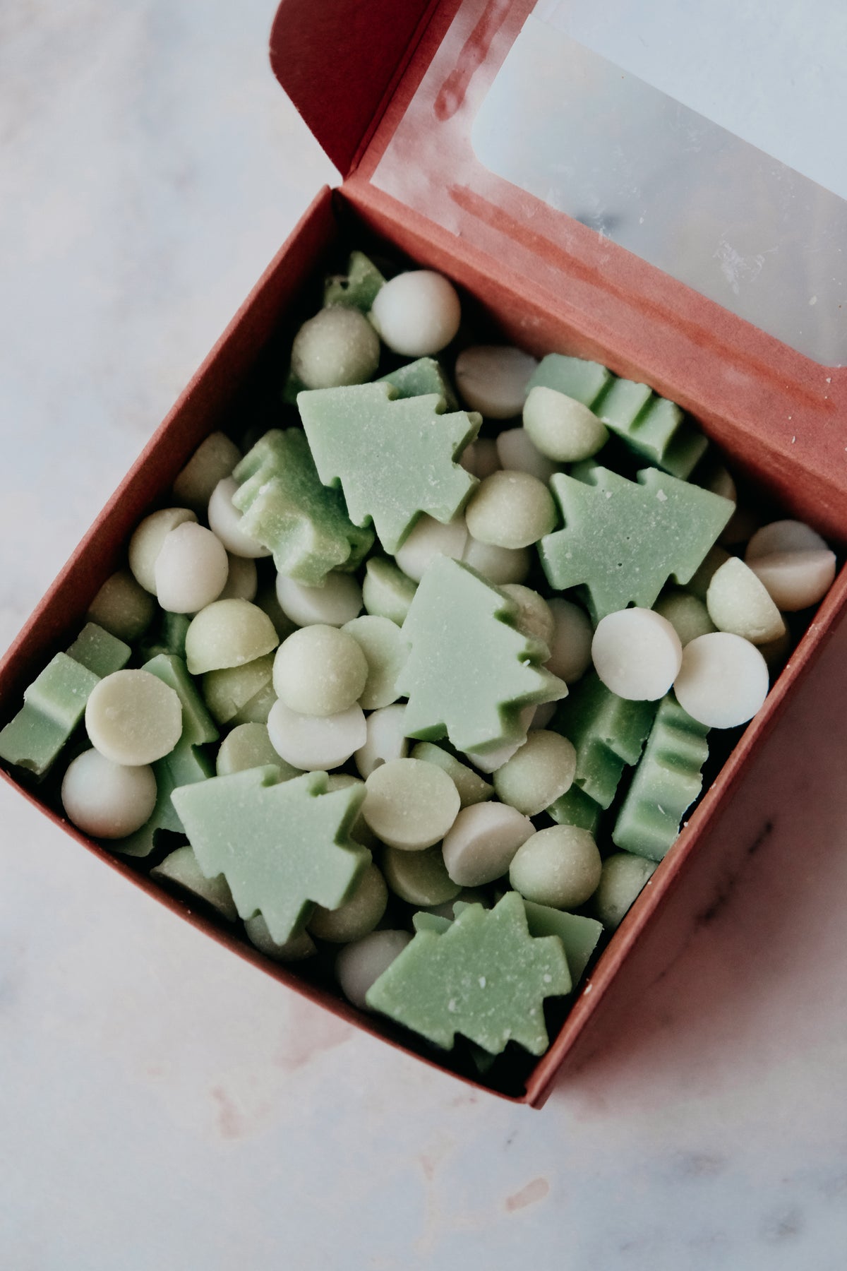 Sweet dreams of holly and ribbon! Pair our Balsam Fir Scented Christmas Tree wax melts that will shimmer once reached full pool.