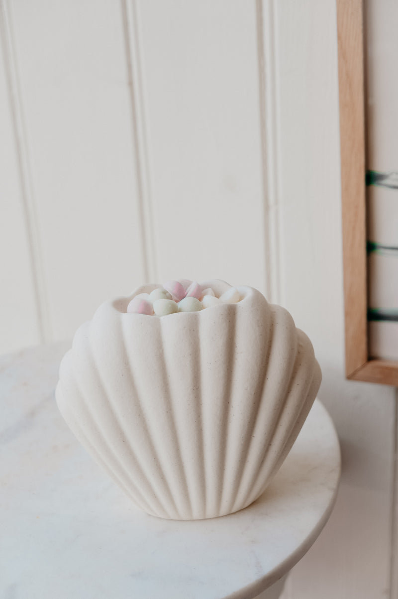 In minimal cream with a light speckle, the Fern Shell Cream Speckle Wax Melt Oil Burner has a dipped top. Simply light a tealight to infuse your space with a scent of choice. Comes complete with a box