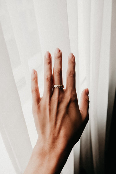 French girl all over.  The matt gold ring features an elegant soft twist that looks perfect complimented with un café crème and a red lip. Everyday luxe that will complement day-to-day vibe.