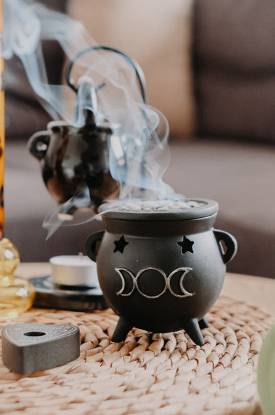 Bubbling Brew Moon Halloween Cauldron Incense Cone Holder - comes with 2 incense cones