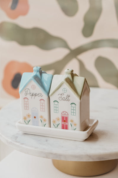 Equally pretty and practical, the cottage house salt and pepper shakers will be a cute addition to your space. The pastel hues and floral detailing will fit most interior types and sit on dish. Handwash only.