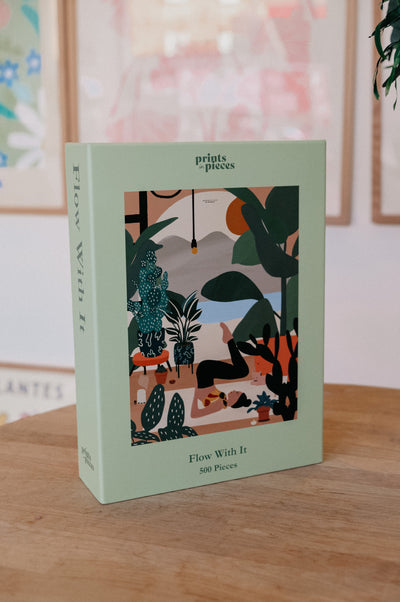Enjoy some downtime with the Flow With It 1000 Piece Jigsaw Puzzle. The puzzle is based upon a print by Yani Putri and her flow with it piece, is a tranquil depiction of inner peace and relaxation. Whether as a team or solo, this jigsaw puzzle is a fun and relaxing activity.