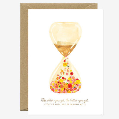 Hourglass Floral Happy Birthday Greeting Gift Card