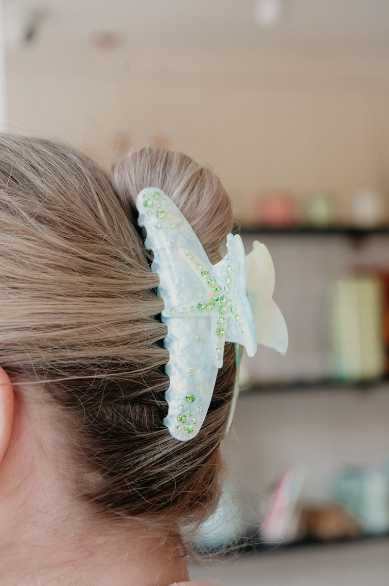 Nyla Starfish Green Mermaid Diamante Claw Clip