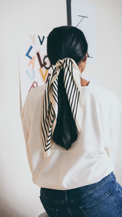 Ellen Cream and Black Stripe Hair Scarf / Neckerchief