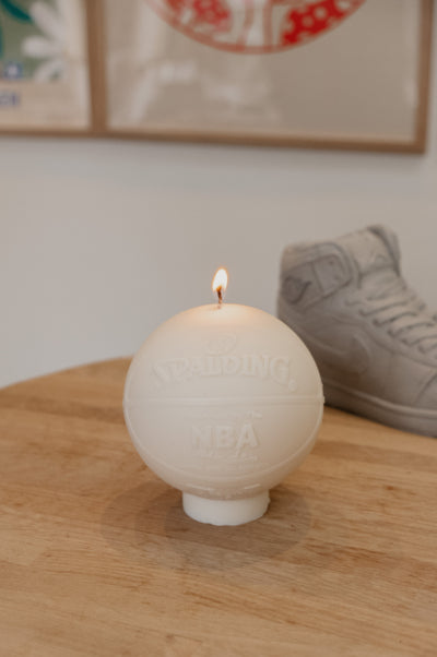 An aesthetic Basketball Candle that is crafted at Ajouter HQ. The basketball shape features full grain and branding throughout, complete with a stand (if you wish to burn this candle please place a plate under it). Whether its a work or living space, this basketball candle will make for the perfect gift and comes complete with a branded dustbag and gift note (please add message at checkout). Made from 100% soy wax and finished with a braided wick. This candle comes unscented however if you wish to add a scent please select from dropdown.