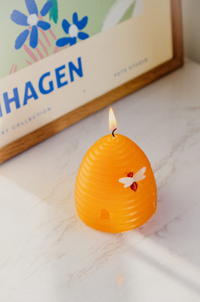 Splash of Spring with the Hive Bumblebee Beeswax Candle. The all yellow beeswax candle features a little bee accessory and comes complete with a giftbox. Burn time of 20hrs.