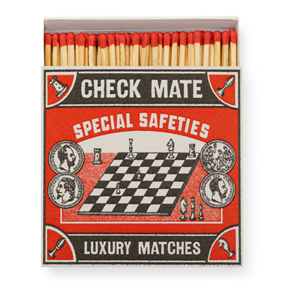 Strike a match to cosy season with the Check Mate Chess Matchbox. Whether you are gifting with one of our handmade candles or adding it to your coffee table, this playful matchbox will be a statement addition. Stick colour may vary from colour shown in image.
