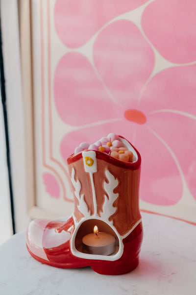 Saddle up your senses with this pink cowboy boot oil burner and wax warmer, perfect for wrangling sweet scents into your space.