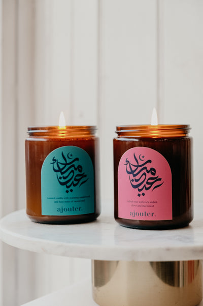 Eid Mubarak! Our handmade candles will make for the perfect decor addition or Eid gift. Select from velvet rose with rich amber clove and oud wood or toasted vanilla with warming sandalwood and base notes of oud.