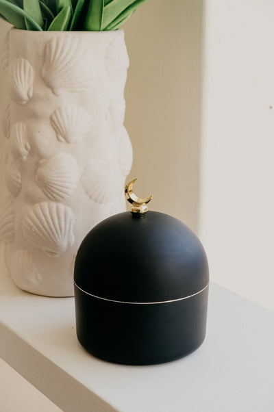 A classic yet strong hue that will add an elegant touch to your space. The exquisite quality of the Moon Dome Storage Jars makes for a wonderful Ramadan / Eid gift or an everyday addition to your interiors. Open the lid using the crescent moon topper to find a light shimmer that is made for food treats or your best jewellery bits. Comes complete with a gift box.
