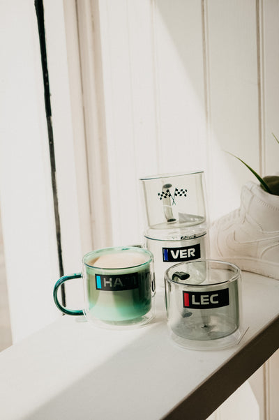 Start your day in pole position with the F1 Driver Inspired Customised Double Layered Mug (available in green, mustard, teal, pink and grey). Featuring a transparent second layer to ensure that your beverage of choice stays warm. The danish inspired design is complete with a rounded handle. Leave the name of your driver of choice at checkout or state 'flag' if you would just a checkered flag.