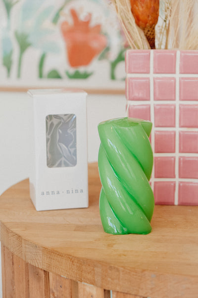 Twist and turn your space into a cosy haven with the Green Twisted Chunky Candle. Coffee table, mantle or dining table, the statement candle will be a playful addition. Available in other colours and comes complete with a gift box. Sold individually.